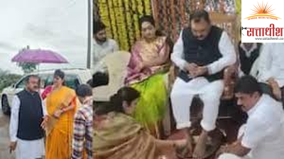 देशाचा गृहमंत्री अमित शहाच कुठलीही चौकशी न करता ज्या बाबाच्या फॉर्महाऊसवर भेट देतो व त्यांचे फोटो बाबाच्या संस्थानात दर्शनीस्थानी लागतो,यातच त्या बाबाची महिमा स्पष्ट होते.मूळात अमित शहांच्या दौ-या आधी त्यांच्या तपास व सुरक्षा यंत्रणेला या बाबाचा महिमा कळला नव्हता का?हे कोणाचे अपयश आहे?उपमुख्यमंत्री व तत्कालीन मुख्यमंत्री एकनाथ शिंदे तर या बाबांचे अस्सीम भक्त होते.मागे काही महिन्यांपूर्वी उपमुख्यमंत्री निवासात एक प्रचंड मोठी पूजा करण्यात आली,ती या खरात बाबांच्या सांगण्यावरुन करण्यात आली होती का?याचाही तपास आता एसआयटीने करावा….!चाकरणकर खरातची पाद्य पूजा करीत असताना मागेच जिल्ह्याचे खासदार नीलेश लंके देखील खुर्चीवर बसलेले दिसून पडत आहेत…!