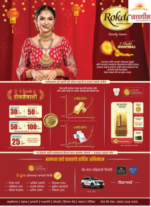 या वर्षी, विदर्भातील नं. 1 ज्वेलरी ब्रँड रोकडे ज्वेलर्स आपली सणासुदी आणखी खास करत आहे त्यांच्या उत्सव मोहिमेसह “ये दिवाली रोकडेवाली”. धनतेरसी दिवशी सर्व शो रूम सकाळी ८ वाजता उघडतील, ज्यामुळे ग्राहकांना नवीन दागिने घेऊन सणाची सुरुवात करण्याचा सर्वोत्तम संधी मिळेल.