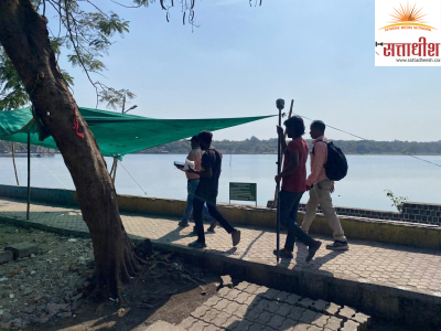 (छायाचित्र : फूटाळा तलावाच्या पाणलोट क्षेत्राचे मोजमाप करताना)