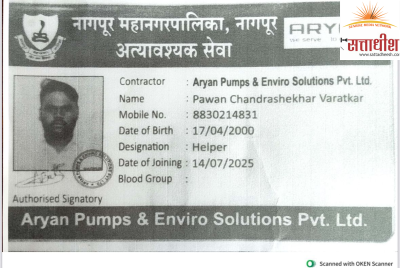 नागपूर,२६ ऑक्टोबर २०२५: नागपूर महानगरपालिकेच्या अंतर्गत आर्यन पम्प्स अँड एन्व्हायरो सोल्यूशन प्रा.लि. येथे हेल्पर पदावर कार्यरत पवन चंद्रशेखर वरतकर या कर्मचाऱ्याचा प्रशासकीय हलगर्जीपणामुळे मृत्यू झाला. या संपूर्ण प्रकरणाची सखोल चौकशी व्हावी व मलवाहिनी साफ करण्याच्या या कामातील संबंधित कंत्राटदार आर्यन पम्प्स अँड एन्व्हायरो सोल्यूशन कंपनी व नागपूर महानगरपालिकेचे संबंधित अधिकारी यांचेवर सदोष मनुष्यवधाचा गुन्हा दाखल करण्यात यावा, अशी मागणी माजी नगरसेवक तथा भारतीय जनता पार्टीचे प्रदेश उपाध्यक्ष ऍड. धर्मपाल मेश्राम यांनी केली आहे.