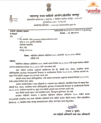 शाह यांनी अनेक प्रकरणांचा दाखला देत जाधव यांनी २०१८ पासून अनेक गंभीर प्रकरणे सुनावणीसाठी लावली नसल्याचे सांगून, सर्वोच्च न्यायालयाच्या आदेशाची दिशाभूल करणारी माहिती देत ,शाह यांची अपील फेटाळण्याचा अहवाल तत्कालीन माहिती आयुक्त धानोरकर यांना दिला ! कक्ष अधिकारी नंदकुमार राऊत व उपसचिव रोहिणी जाधव यांनी सर्वोच्च न्यायालयाच्या आदेशाचा चुकीचा अर्थ काढून चुकीचा अहवाल नागपूर खंडपीठाचे तत्कालीन माहिती आयोगाचे आयुक्त दिलीप धानोरकर यांना दिला असल्याचे कमलेश शाह यांनी सांगितले.